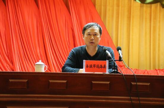 通海縣人大常委會(huì)主任、政法委書記陳文存在會(huì)上交流匯報(bào)